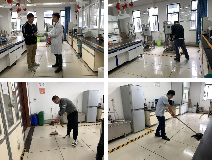 随后,全体教师深入实验室开展安全检查、防疫物资领取以及卫生清洁等活动。化学化工学院实验中心孙光映向实验室管理人员分发防疫物资,并检查了实验室卫生情况和实验室记录情况等。