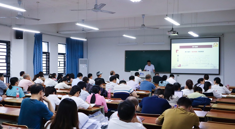 9月14日下午,化学化工学院联合外国语学院举办《习近平谈治国理政》第四卷专题辅导报告会,报告会邀请了马克思主义学院朱哲恒博士主讲,外国语学院乔根书记主持,两院教职工参加了报告会。