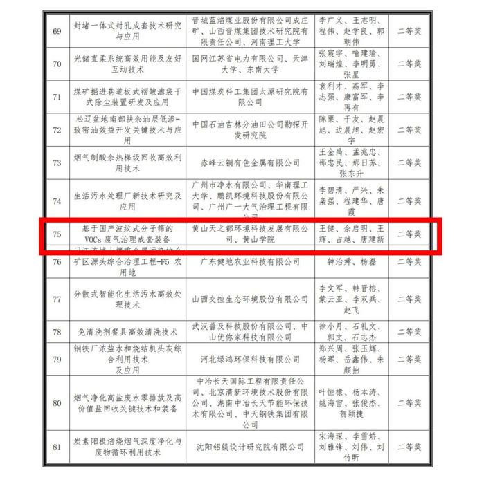 近日,化学化工学院佘启明博士与黄山天之都环境科技发展有限公司联合完成的项目《基于国产波纹式分子筛的VOCs 废气治理成套装备》获2023年度中华环保联合会科学技术奖科技进步二等奖(第二完成人,365英国上市官方网站为第二完成单位)。