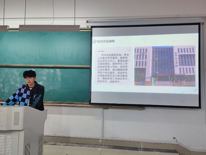 大会初始,何瑞诚向全体成员详细介绍了各部门的主要职责。通过细致的讲解,使参会人员对学生会有了更深入的了解,同时明确了自身的角色与责任。此外,他还强调了学生会成员应做好本职工作,为广大学生服务,树立良好榜样的重要性。