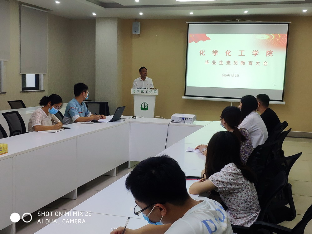 2020年7月7日下午,化学化工学院在学院会议室举行毕业生党员教育大会。学院党委书记程周旺、党委副书记叶双峰、部分党支部书记、秘书及毕业生党员参加会议,会议由叶双峰主持。