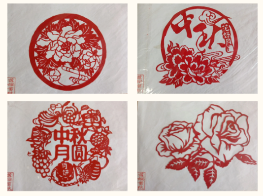 活动开始,志愿者首先向大家讲解中华民族的剪纸文化,介绍了剪纸的基本技巧及注意事项并展示了自己提前剪好的作品,随后一边进行示范,一边讲解着折纸步骤、剪纸创意等。同学们围坐在一起,虽然都是初次接触剪纸,手法有点生疏,速度有点慢,但是丝毫没有影响创作的热情。在志愿者的指导下,同学们逐渐熟悉剪纸的基本手法,不一会儿,一张张红纸变成了一幅幅栩栩如生、惟妙惟肖的剪纸作品,“中秋佳节、花好月圆、中秋团圆……”跃然纸上。同学们纷纷围绕作品进行展示交流,现场欢笑声不断,其乐融融。