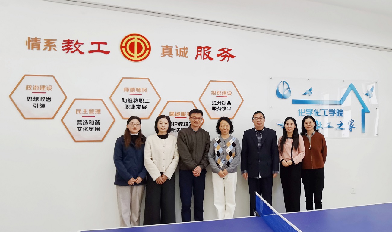 11月8日上午,校工会主席戴小宁一行深入化学化工学院为学院分工会“教工之家”揭牌,并就工会工作进行调研,学院班子成员、工会负责人参加了揭牌和调研活动。