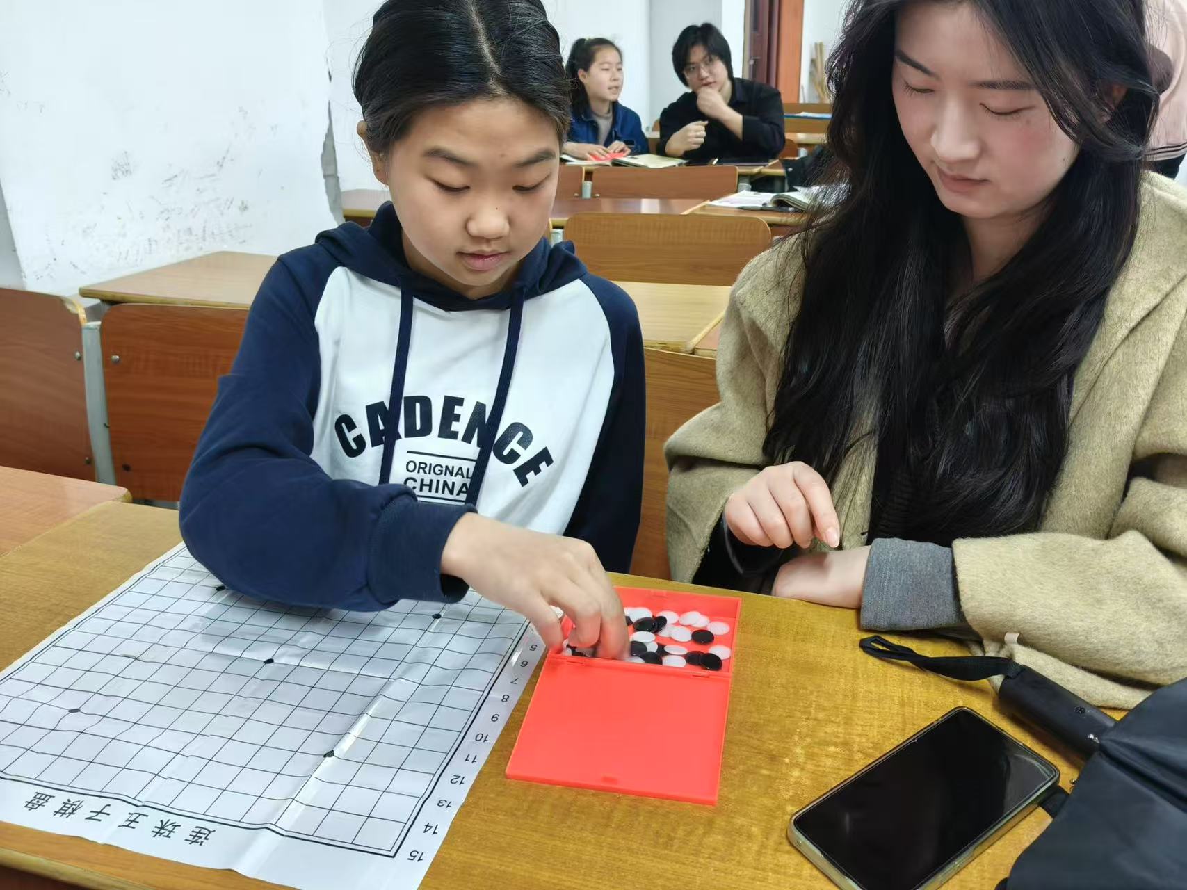 活动现场,小朋友们充满好奇与期待。棋社社员们根据小朋友们的年龄和理解能力,用简单易懂的方式讲解棋类基本规则和技巧。在五子教学区,社员们通过展示棋盘上的黑白世界,让小朋友们感受五子棋的博大精深。为了让小朋友们更好地掌握棋艺,星汉棋社的社员们还精心准备了一些小道具和示例棋局。通过实际操作和互动,小朋友们不仅学会了如何走棋,还培养了逻辑思维和专注力。
